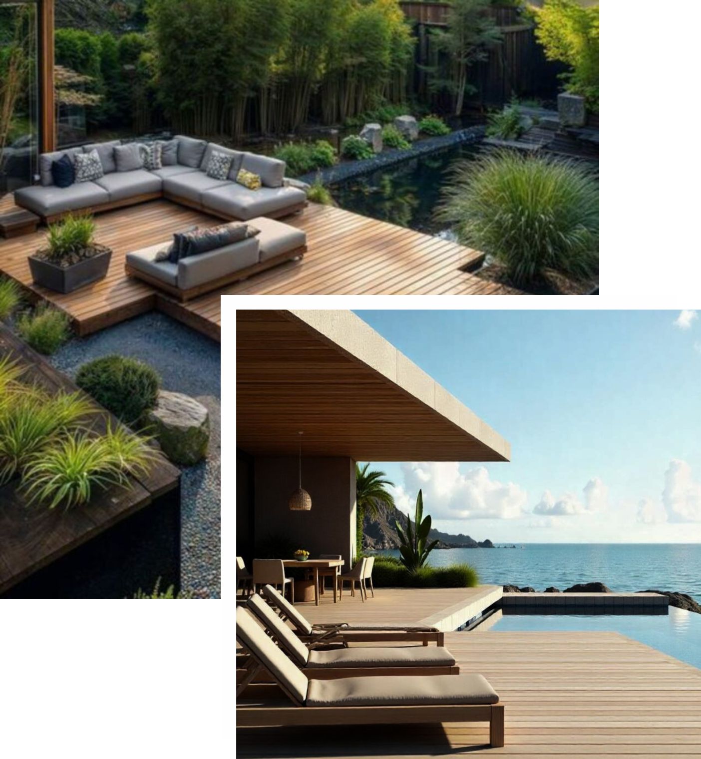Desenvolvemos decks sob medida, planejados de acordo com o estilo, espaço e necessidade de cada cliente. Nossa equipe combina design, funcionalidade e qualidade, criando ambientes exclusivos que valorizam o visual e o conforto do seu espaço.